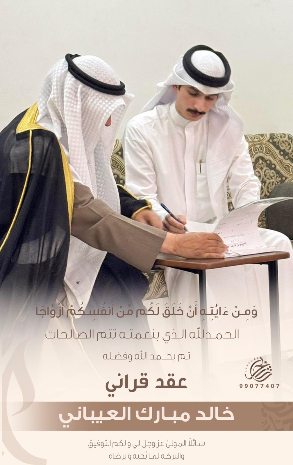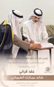 الحمدالله الذي بنعمته تتم الصالحات "تم بحمدالله وفضله عقد قراني" أخوكم /خالد مبارك بن دواخ…