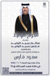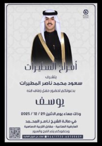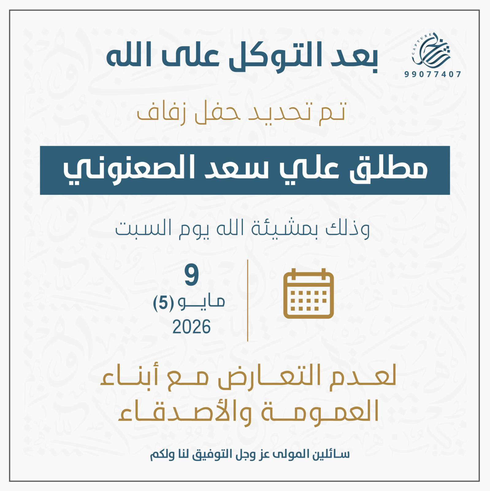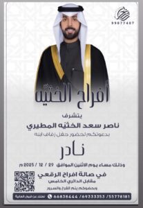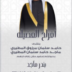 أفراح العضيله "يتشرف"حامد سلمان مرزوق المطيريماجد حامد سلمان المطيري"وإخوانه"بدعوتكم لحضور حفل زواج ابنهم "بندر ماجد"…
