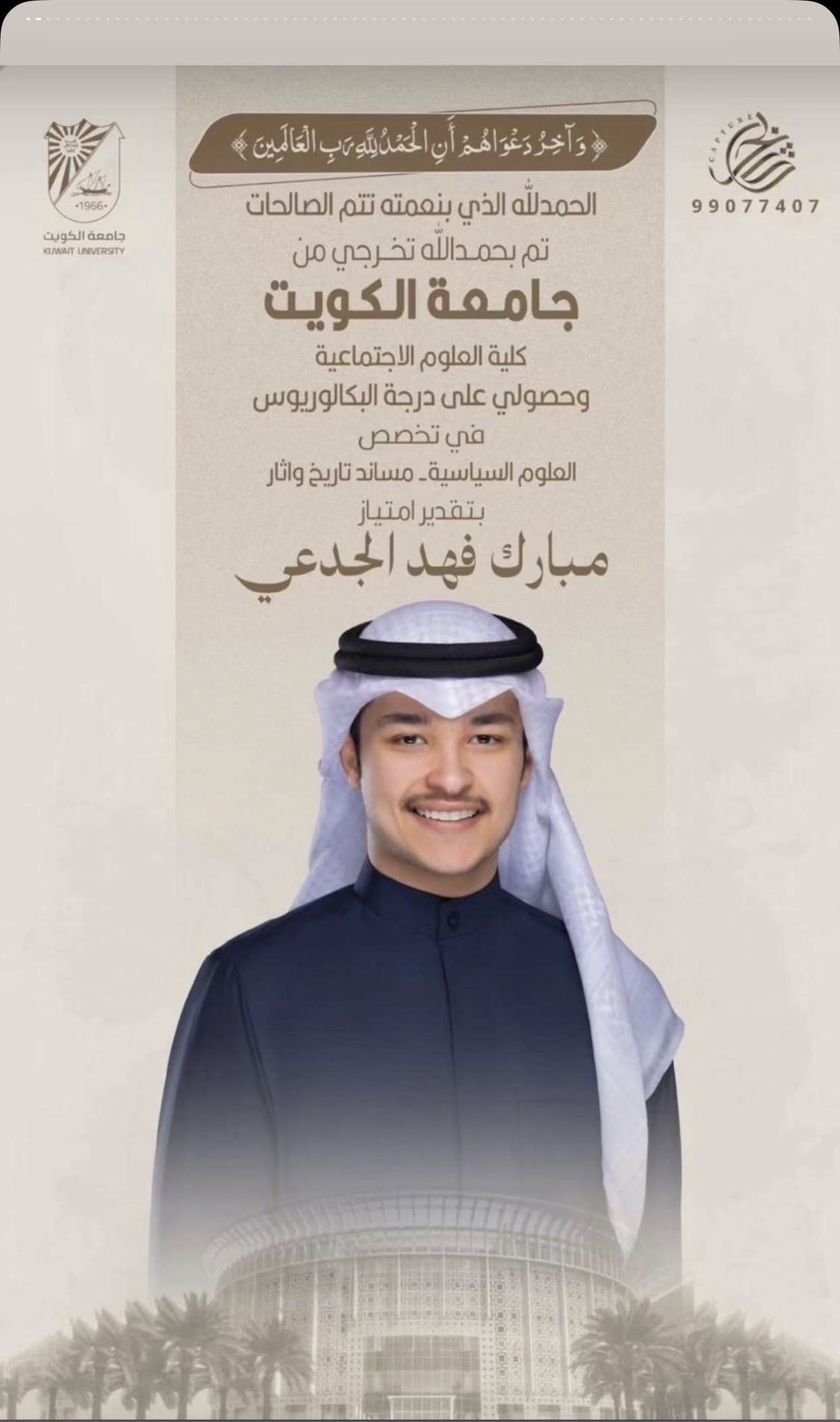 نبارك لابن العم :أ. مشعل علي عيا البعيص المطيريتخرجه من جامعة الكويت - كلية التربيةوحصوله…