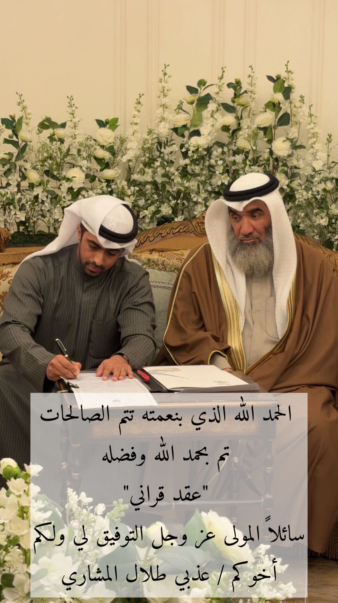 الحمدلله الذي تتم بنعمته الصالحاتتم بحمد الله عقد قران :( عذبي طلال برجس المشاري المطيري…