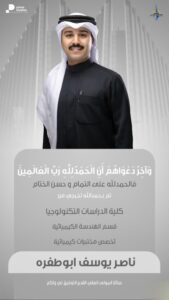 نبارك لابن العم :ناصر يوسف ناصر ابوطفرهتخرجه من الهيئة العامة للتعليم التطبيقي والتدريبكلية الدراسات التكنولوجيا…