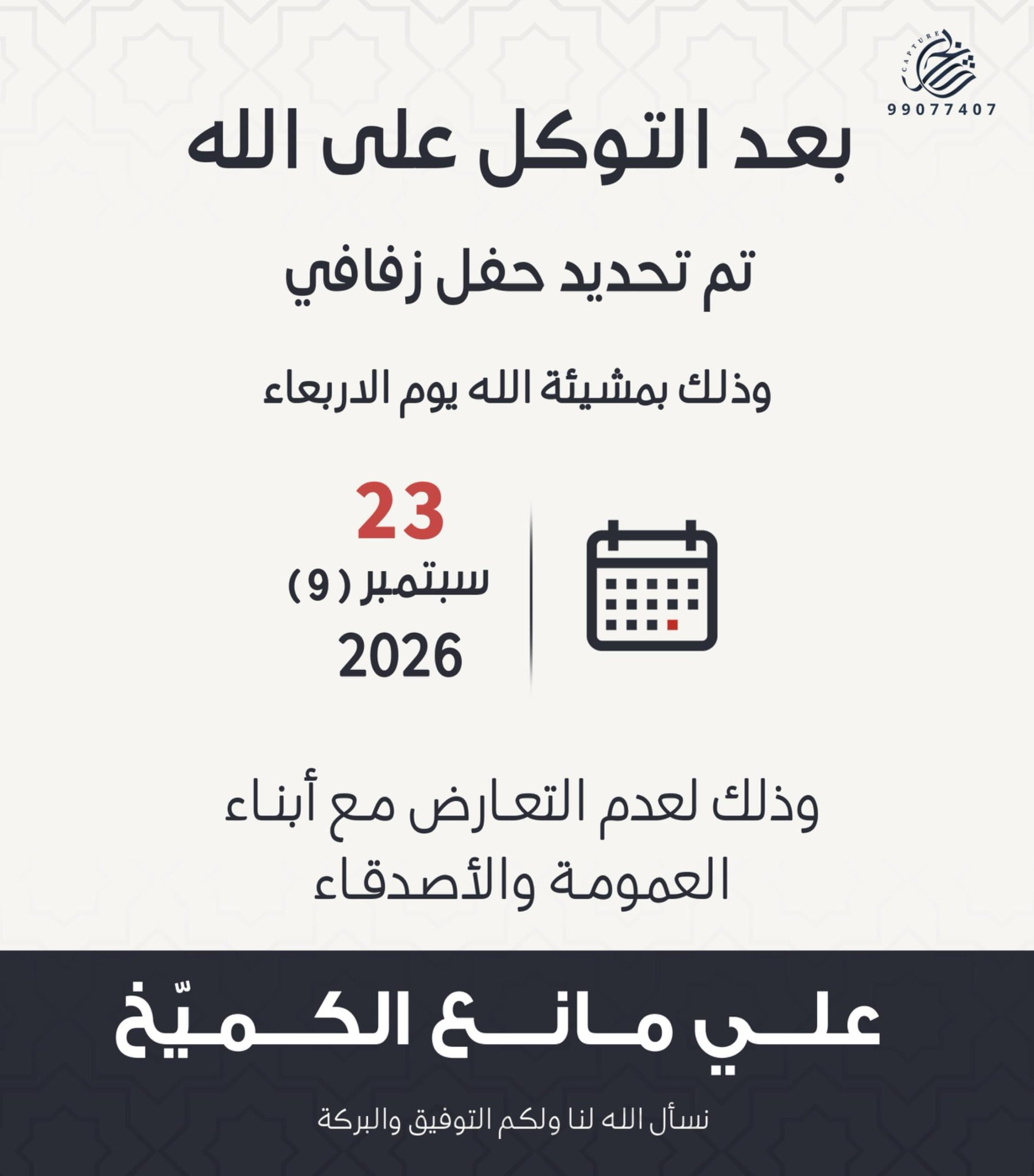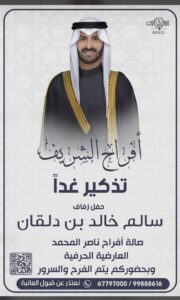 تم بحمد الله وفضله تحديد حفل زفاف علي مانع الكميّخ المطيري