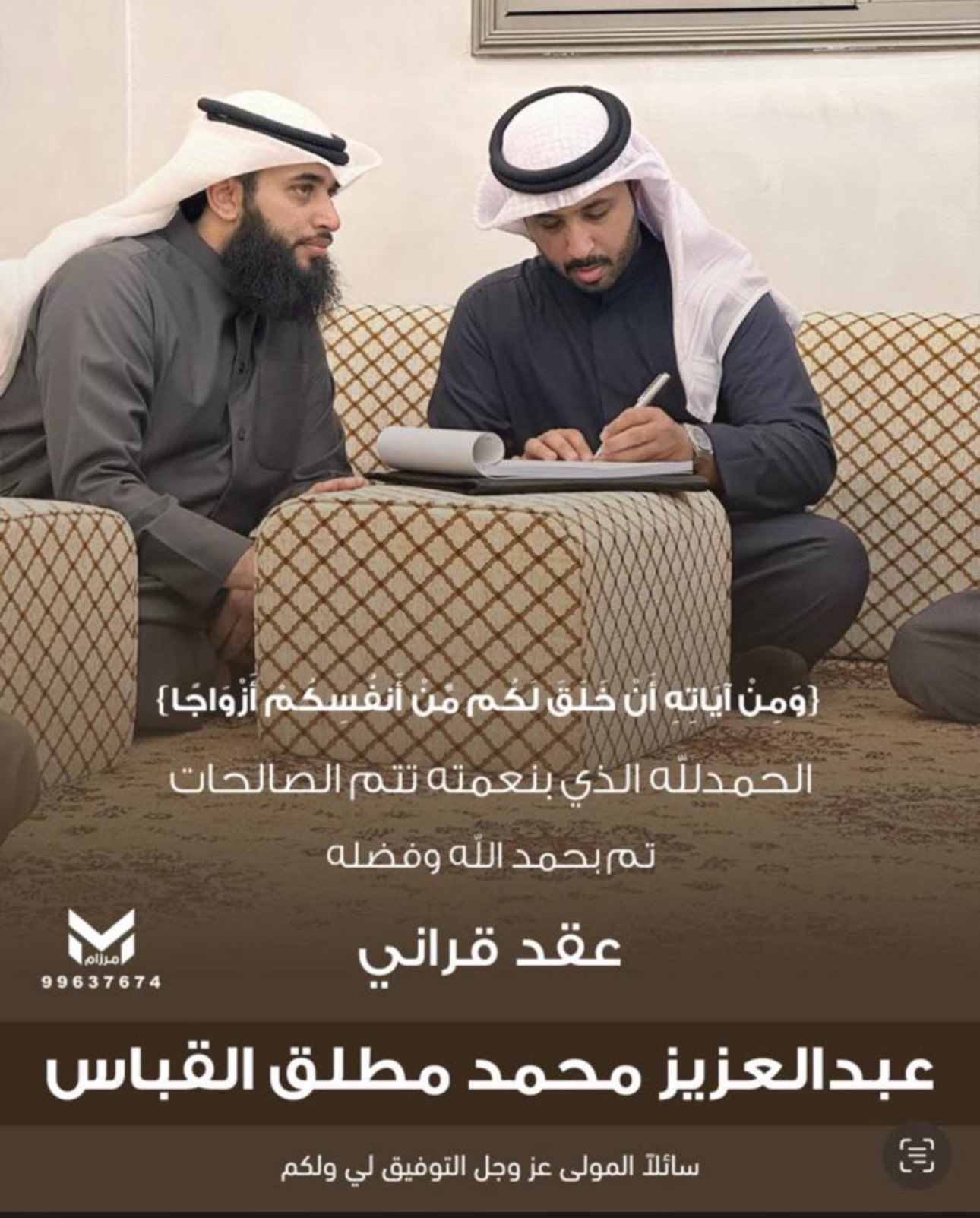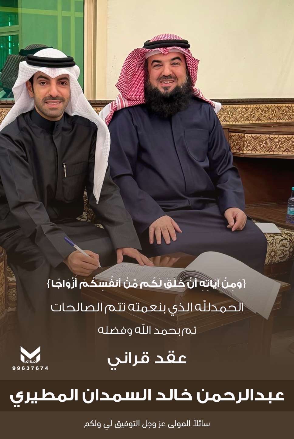 تم بحمد الله عقد قران خالد رجعان سعيد سعود الثقيفي المطيري