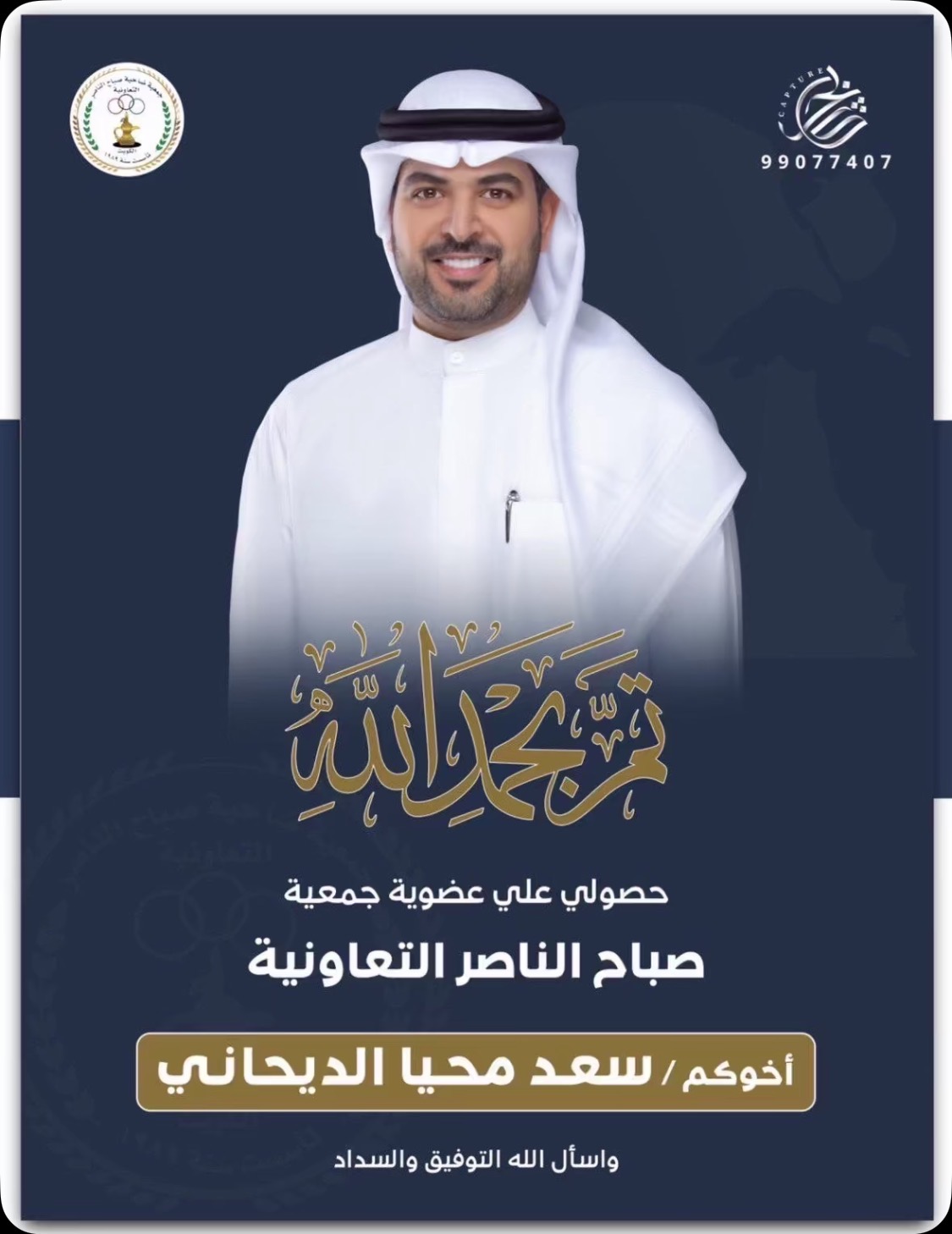 نبارك لابن العم :عبدالله سالم مقذل المطيريحصوله على عضوية جمعية صباح الناصر التعاونية وأسأل الله…