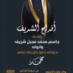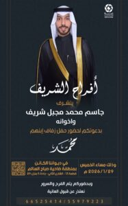 أفراح الشريف يتشرف :جاسم محمد مجبل الشريف المطيري واخوانهبدعوتكم لحضور حفل زفاف ابنهم : (…