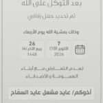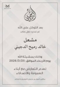 تم تأجيل حفل زفاف ابن العم :ساير نواف فراج البويتل المطيريالى يوم الاربعاء 2026/10/21 موذلك…