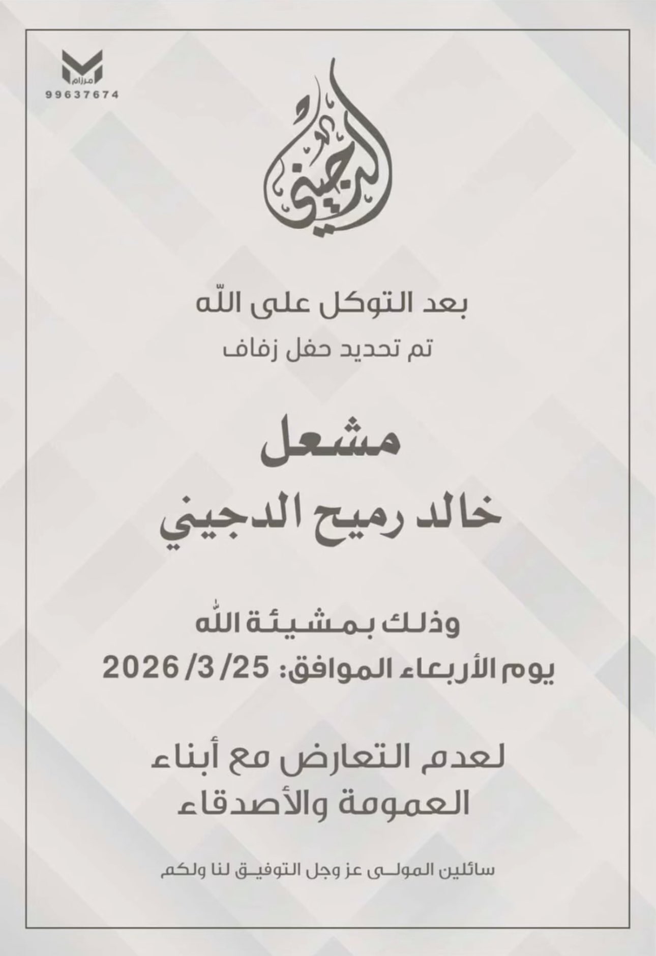تم بحمد الله وفضله تحديد حفل زفاف مشعل خالد رميح الدجيني المطيري