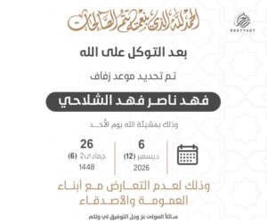 تم تحديد حفل زفاف فهد ناصر فهد الشلاحي