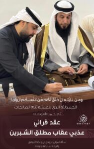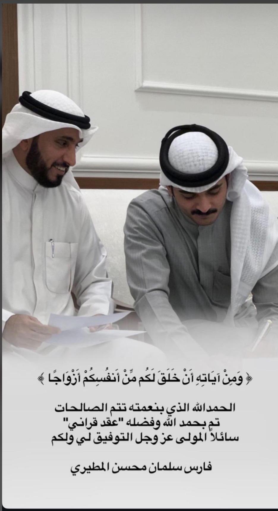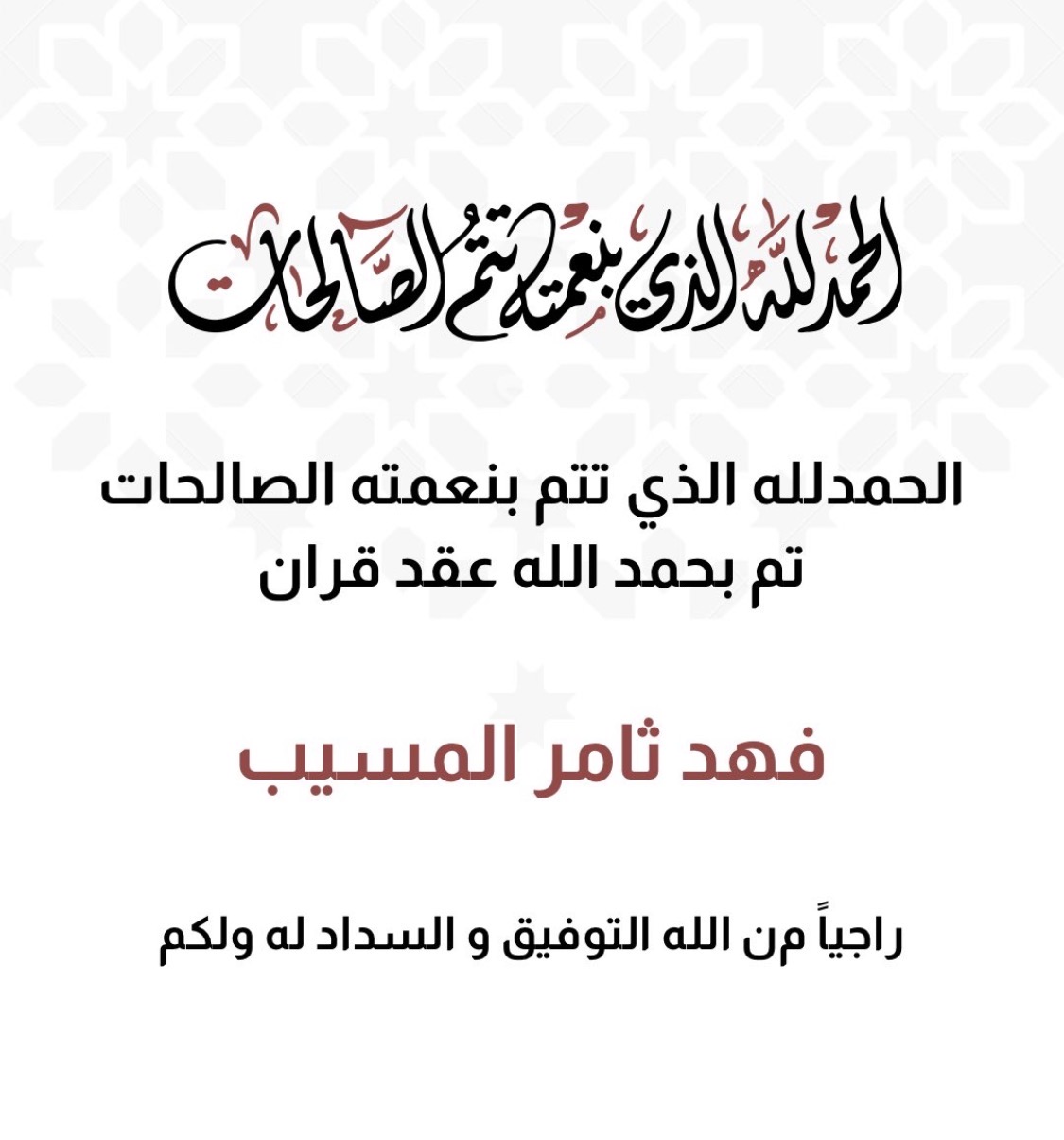 تم بحمد الله عقد قران فهد ثامر زبن المسيب المطيري