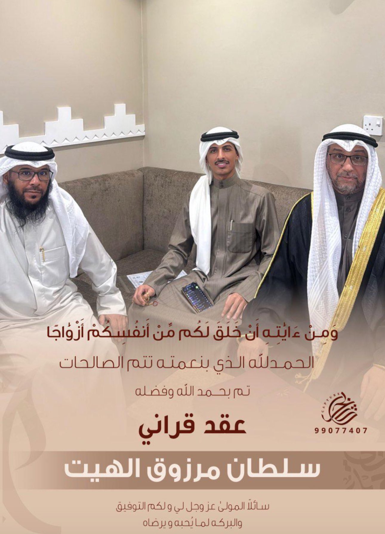 تم بحمد الله عقد قران سلطان مرزرق سلطان الهيت المطيري