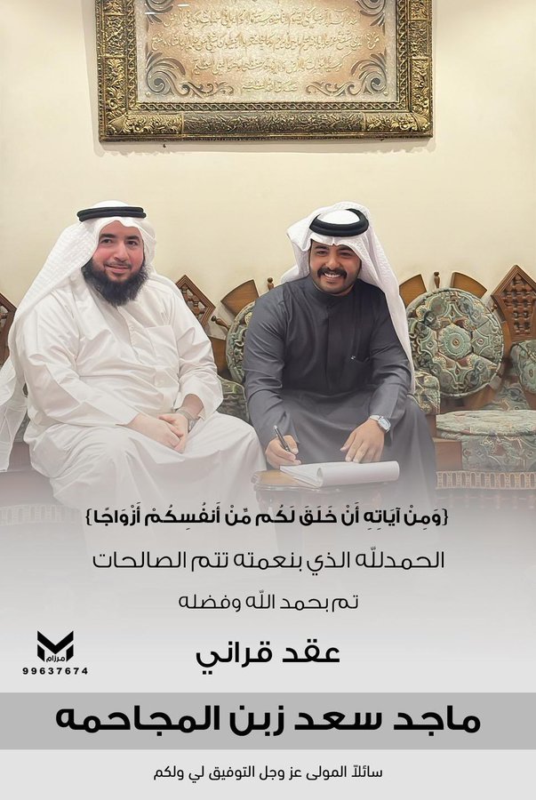 تم بحمد الله عقد قران ماجد سعد زبن المجاحمه