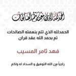 تم بحمدالله وفضله عقد قران فهد لافي السقياني