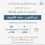 تم بحمد الله وفضله تحديد حفل زفاف عبدالعزيز سعدالشريف المطيري