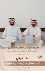 الحمدلله الذي تتم بنعمته الصالحاتتم بحمد الله عقد قران :( مبارك سالم الوليد المطيري )راجياً…