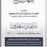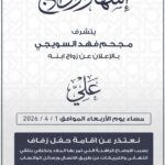 إِشْهَارُ زَواجيتشرفمجحم فهد السويجيبالإعلان عن زواج ابنه1 / 4 / 2026مساء يوم الأربعاء الموافقنعتذر عن…