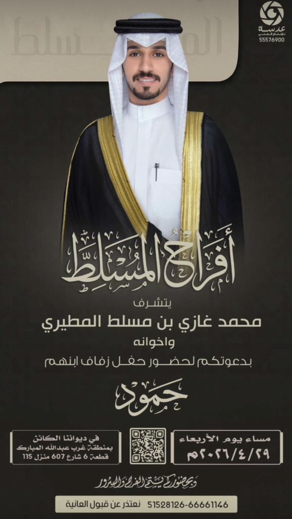بدعوتكم لحضور حفل زفاف ابنهم :