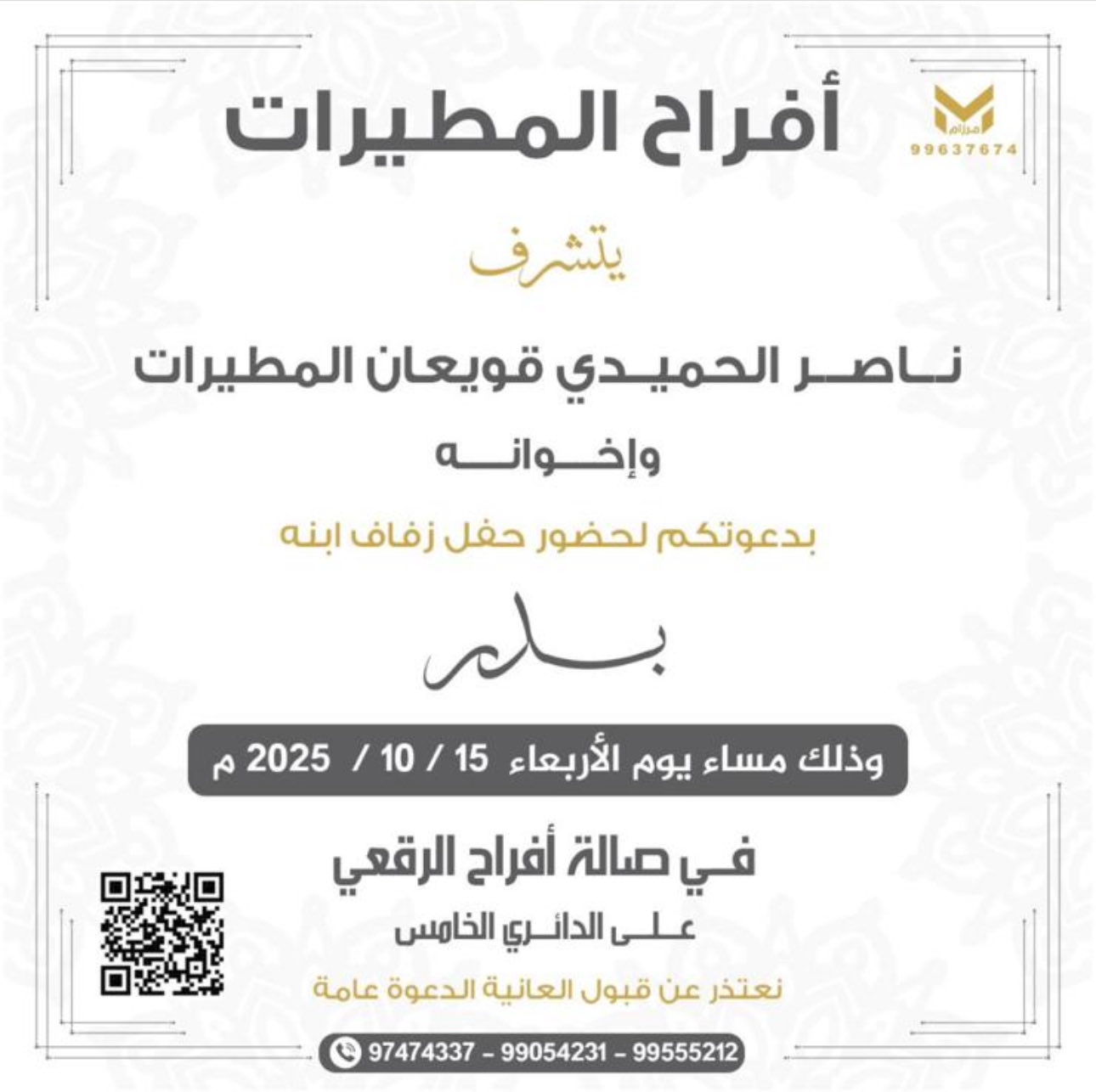 ‏بدعوتكم لحضور حفل زفاف ابنه :