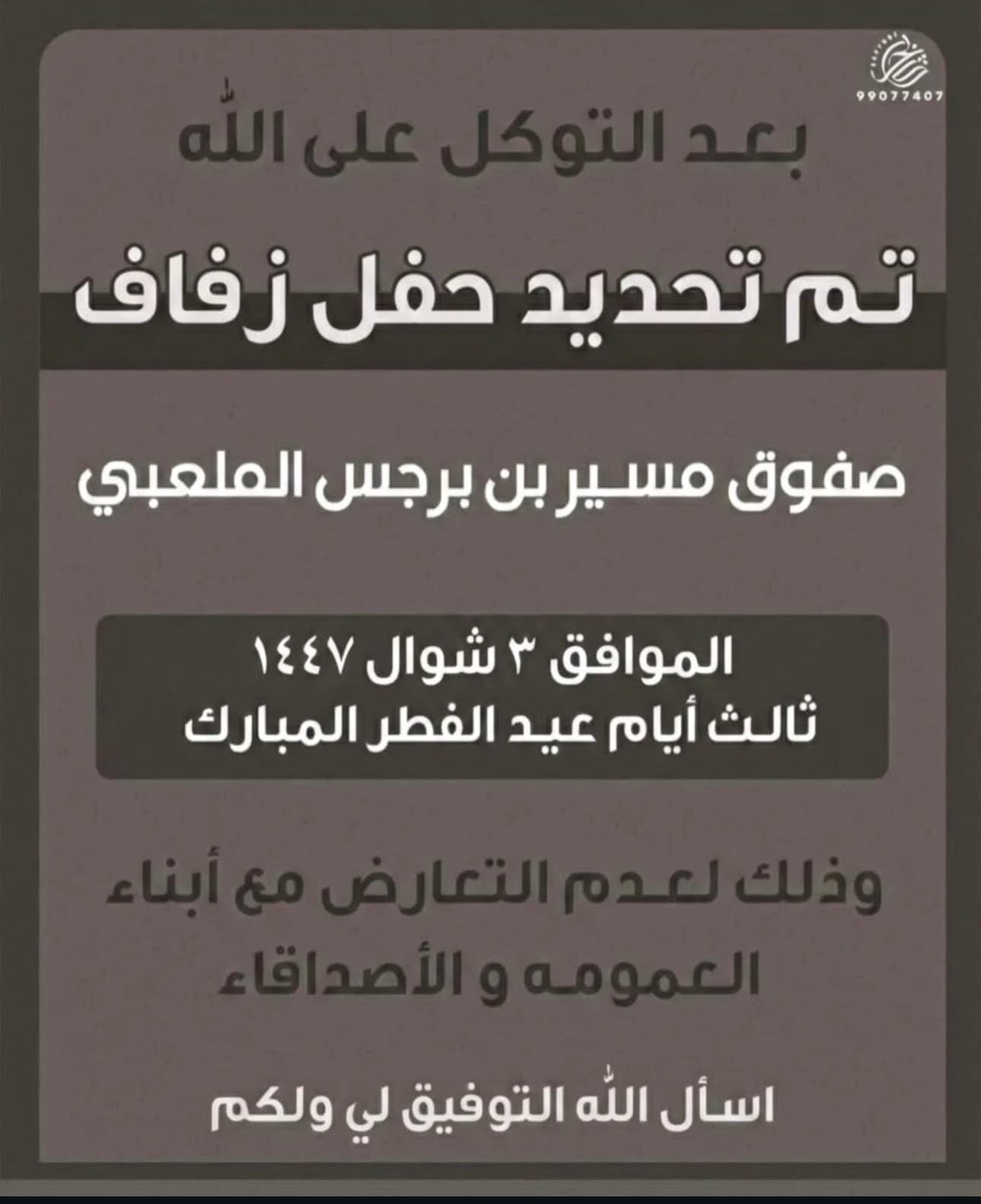 بعد التوكل على اللهتم بحمد الله وفضله تحديد حفل زفاف ابن العم