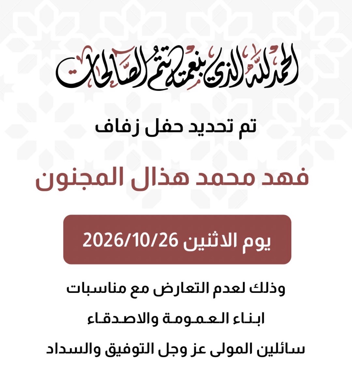 تم بحمد الله وفضله تحديد حفل زفاف ابن العم :