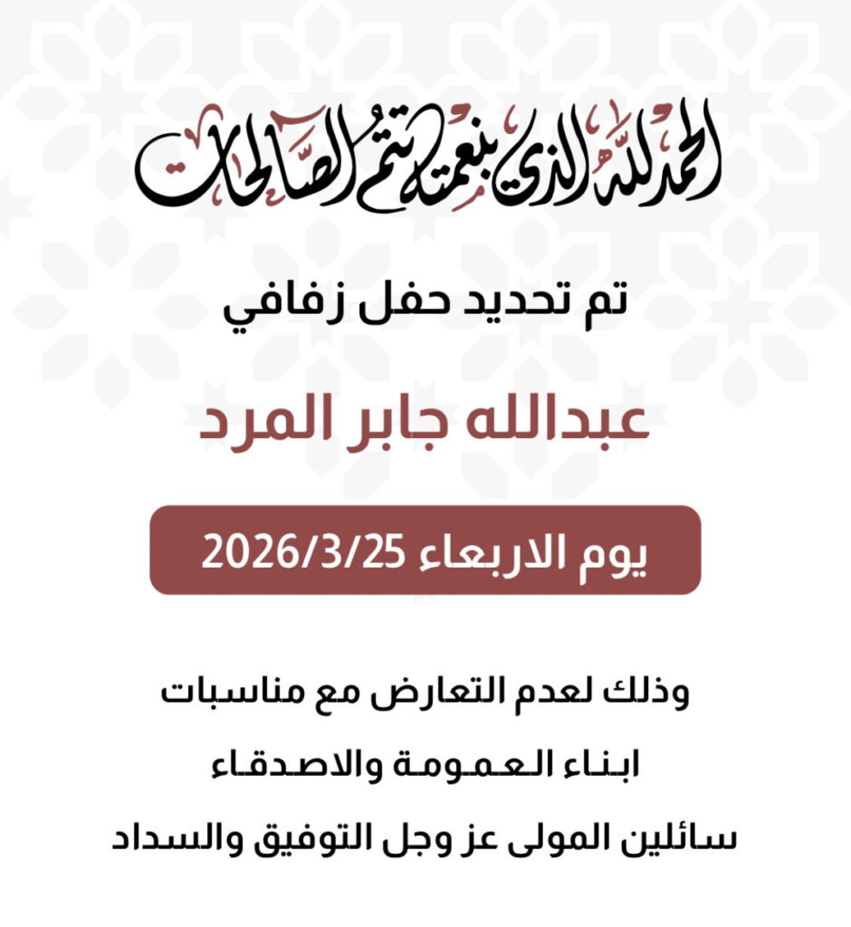 تم بحمد الله وفضله تحديد حفل زفاف ابن العم :