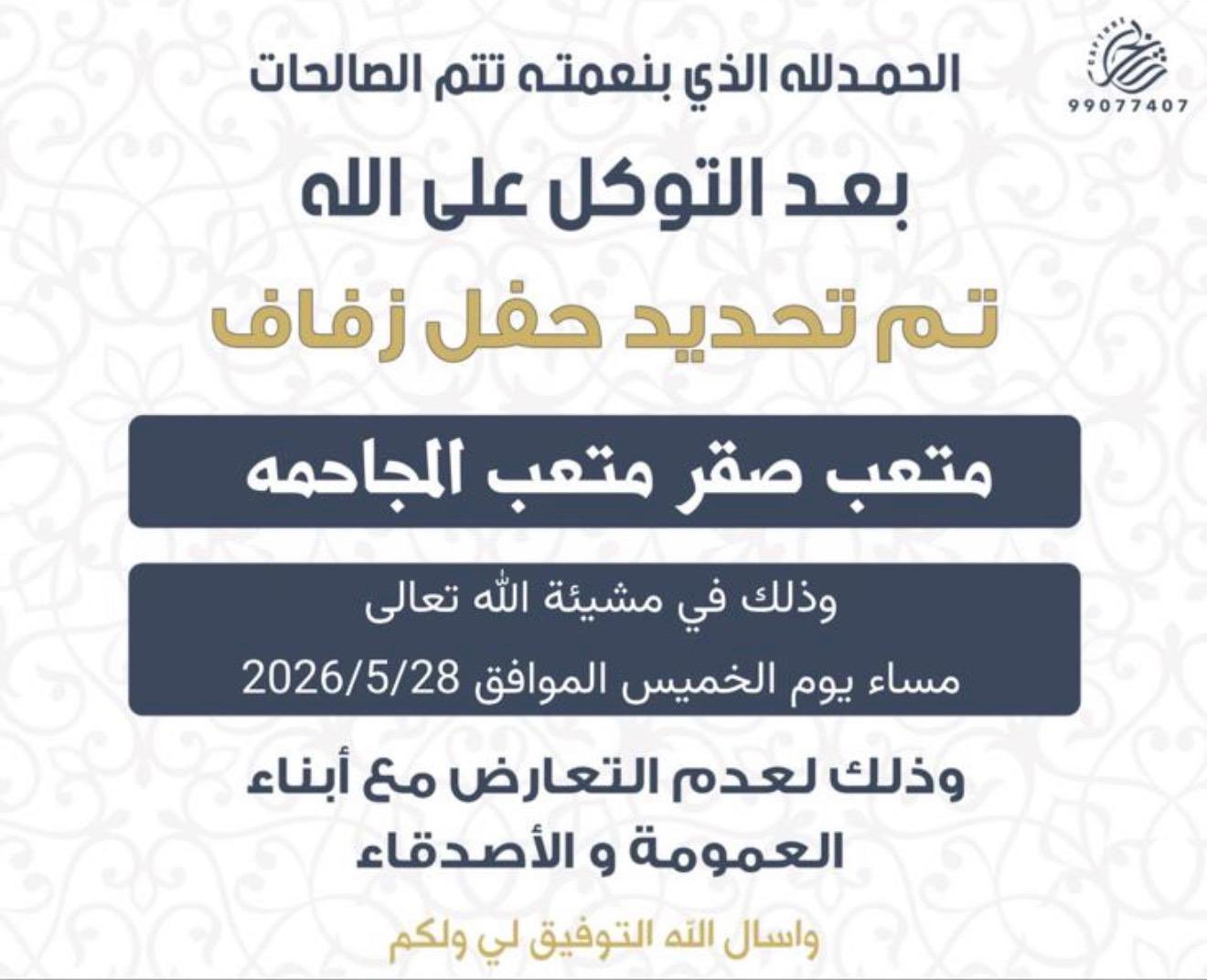 ‏تم بحمد الله وفضله تحديد حفل زفاف ابن العم :