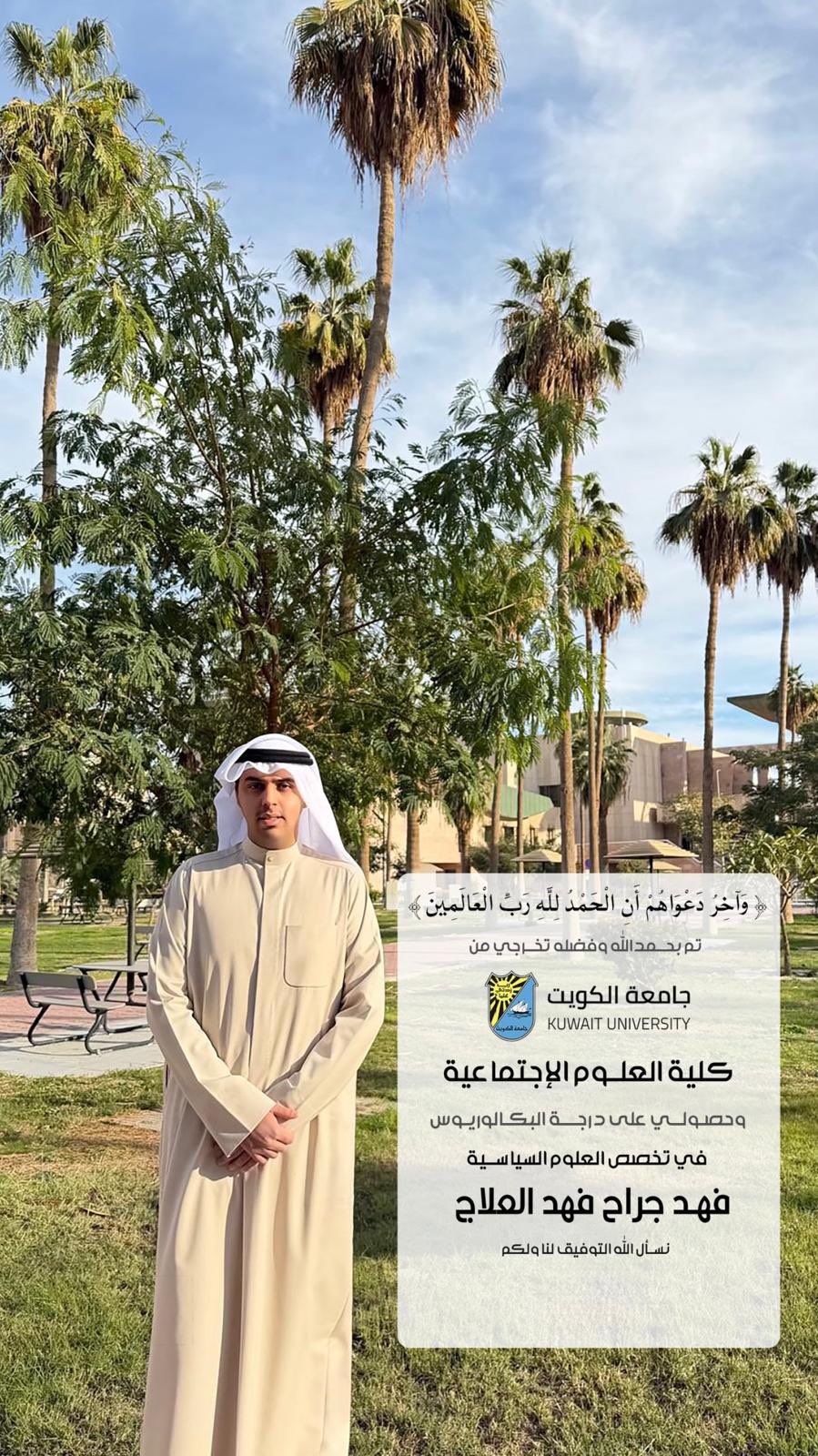 تخرجه من جامعة الكويت – كلية العلوم الإجتماعية