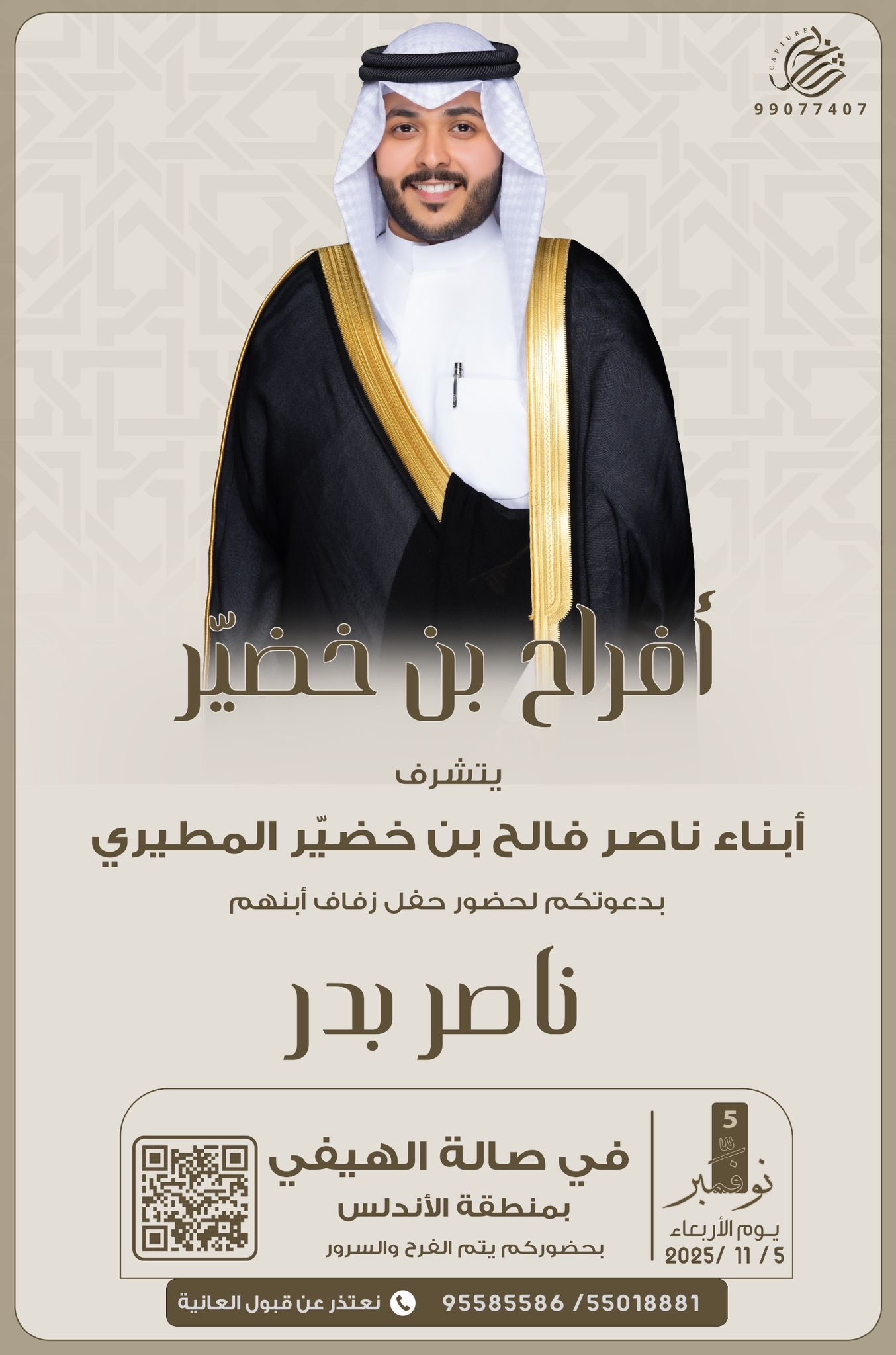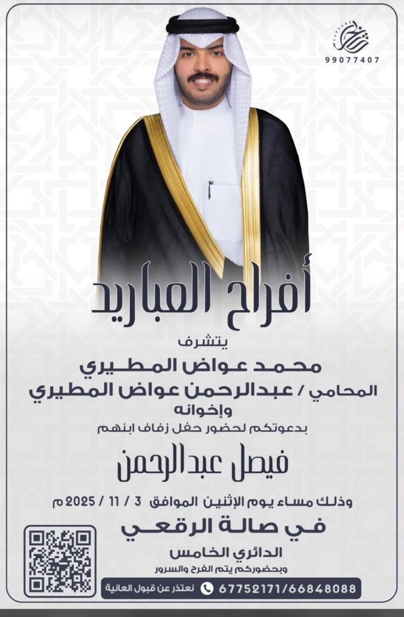 مناسبات Mutair 0 تعليقات تم تحديد حفل بعد التوكل على اللهتم تحديد حفل زفاف فهد مشعل هزاع الهاب الصهيبي بمشيئة الله يوم…