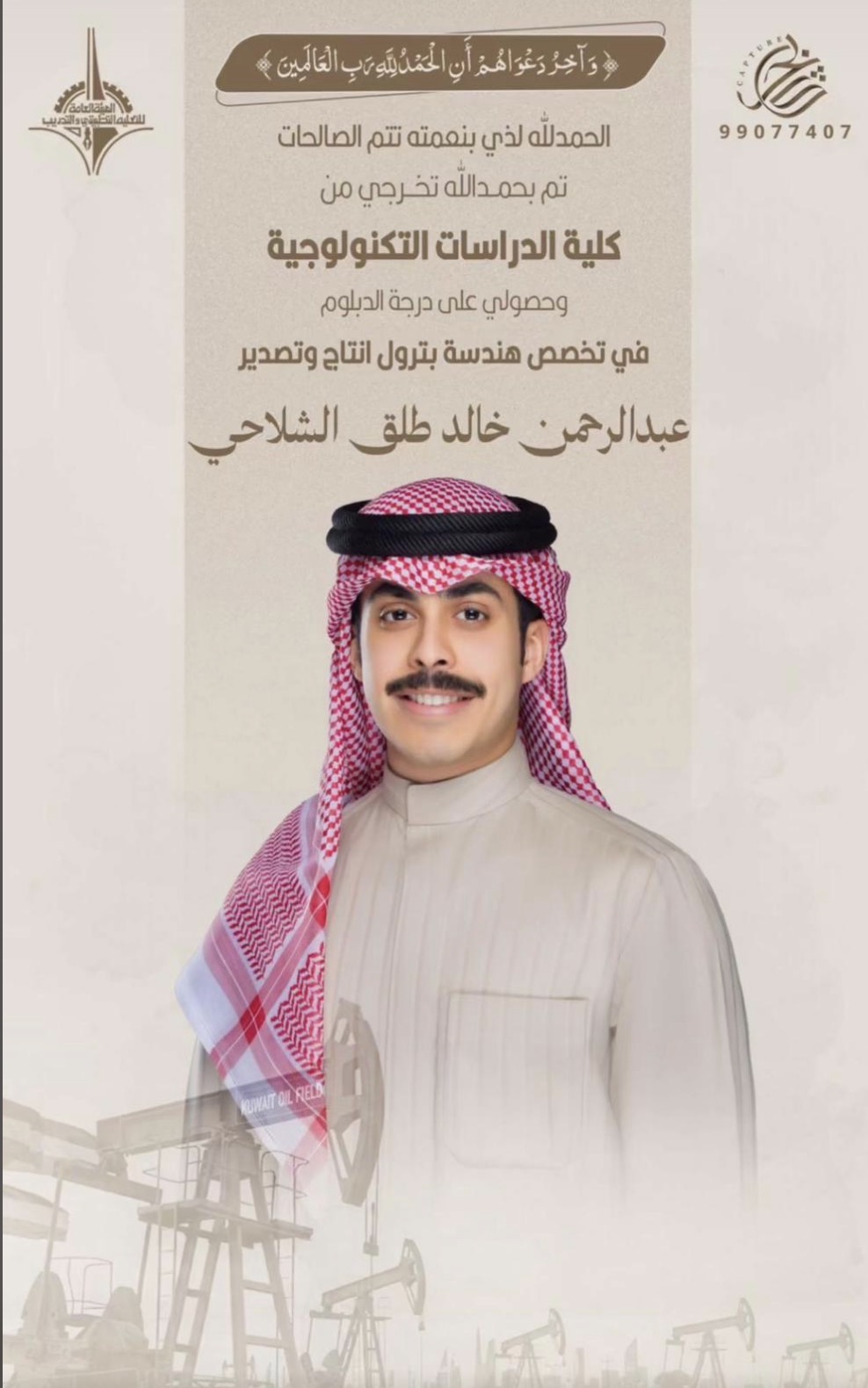 .نبارك لابن العم :تركي نزال زيد القحامي المطيريتخرجه من جمهورية مصر العربيةوحصوله على درجة الماجستيرفي…