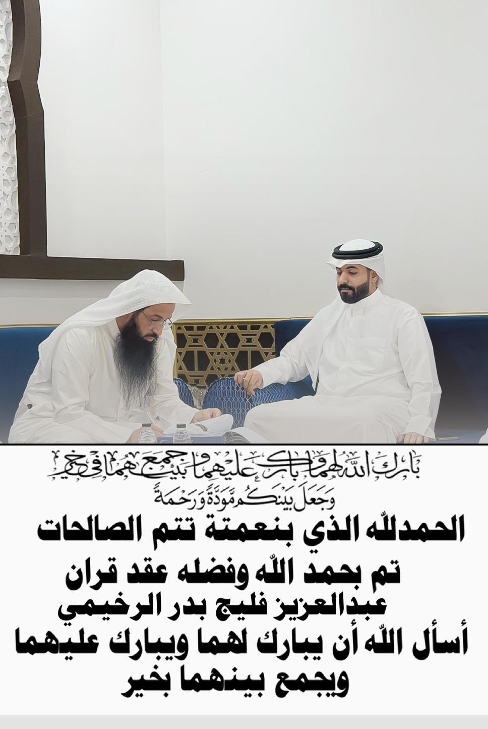 نبارك لأبن العم / عبدالعزيز فليج بدر الرخيمي عقد قرانه أسأل الله أن يبارك لهما…