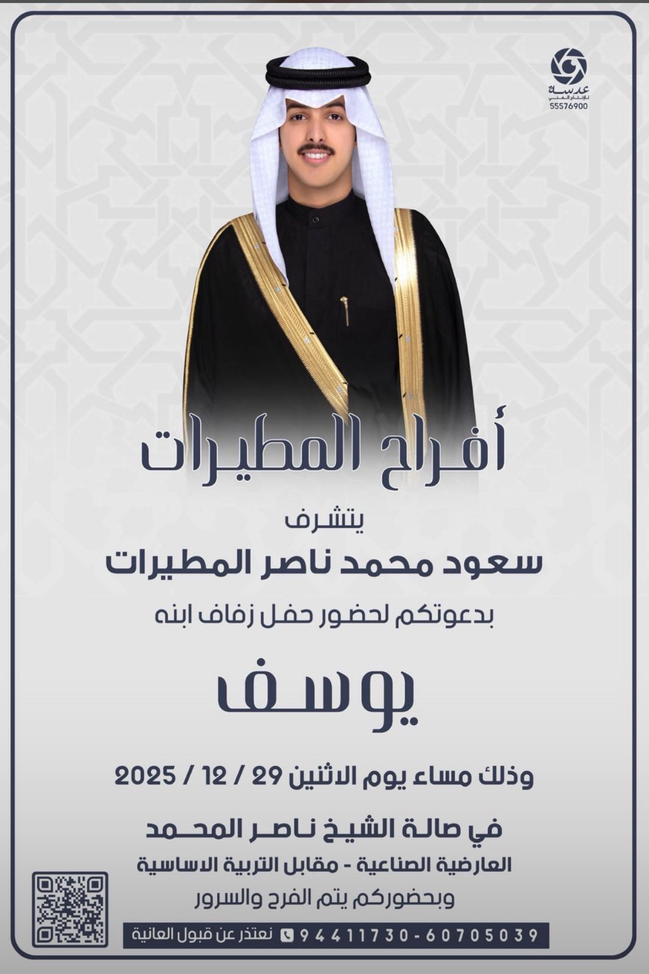 أتشرف بدعوتكم لحضوروذلك مساء يوم الأربعاءالموافق : 25 - 6 - 2025 م في صالة…