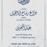 أفراح الخضر "يتشرف"حمد محمد نهار بن خضر "وإخوانه"بدعوتكم لحضور حفل زفاف "ابنه" "شهاب" وذلك مساء…
