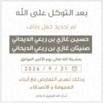 تم تحديد حفل زفاف ابن العم :سلمان حسن هجرس بن غيامالاربعاء 2025/04/30 موذلك لعدم التعارض…