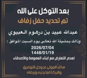 تم بحمد الله ” عقد قراني عبدالرحمن عبدالله زياد المهلكي