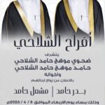 أفراح الملعبي يتشرف :جديع فارس الطيّب الملعبي المطيريرفدي فارس الطيّب الملعبي المطيريبدعوتكم لحضور حفل زفاف…