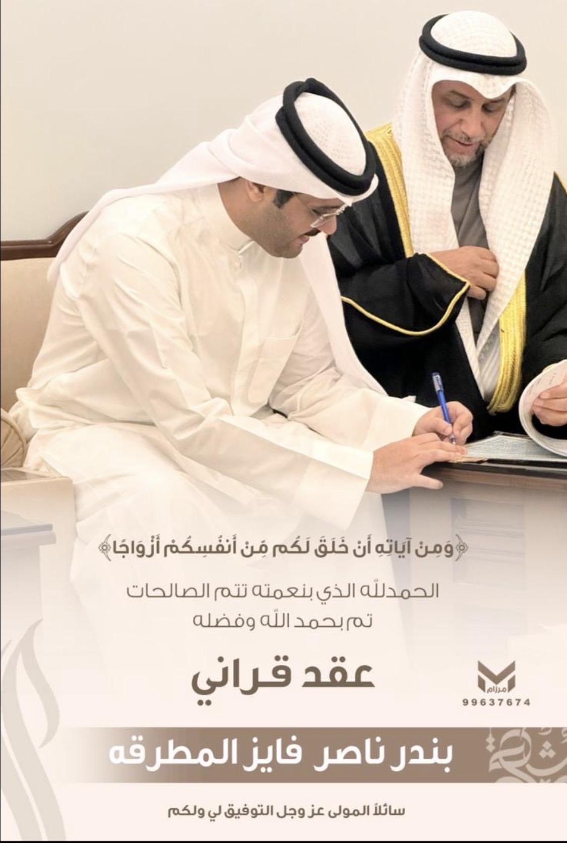 الحمدالله الذي بنعمته تتم الصالحات "تم بحمدالله وفضله عقد قراني" أخوكم /خالد مبارك بن دواخ…