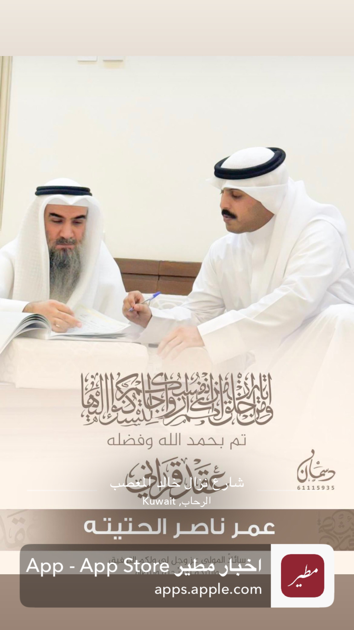 نبارك لأبن العم / عمر ناصر الحتيته عقد قرانه أسأل الله أن يبارك لهما ويبارك…