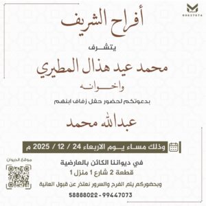 نبارك لابن العم :أ. محمد فلاح مرزوق الدلاج المطيريتخرجه من كلية التربية الأساسيةوحصوله على درجة…