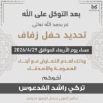 بعد التوكل على اللهتم بحمد الله وفضله تحديد حفل زفاف ابن العم : ( سلمان…