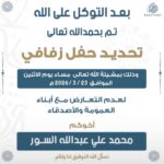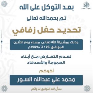 بأسم ابـائــي واعـماميأتشرف بدعوتكم لحضور( حـفل زفــافي )وذلك مساء يوم الاربعاءالموافق 15 / 1 /…