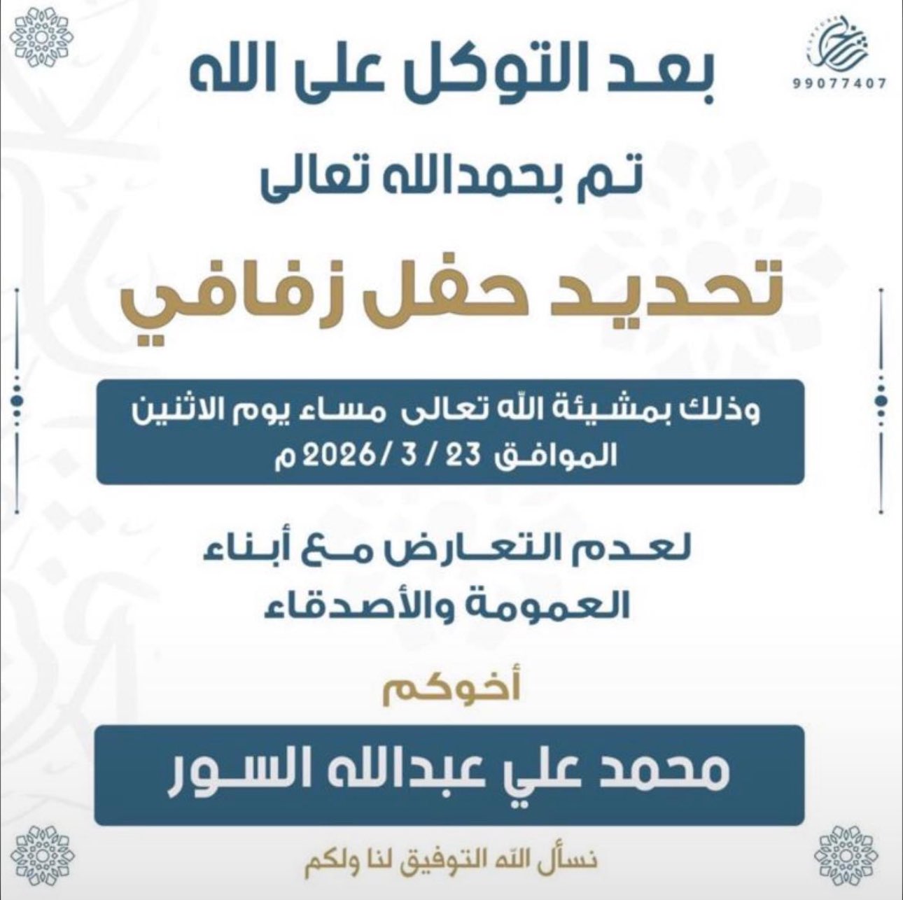 الحمد الله الذي بنعمته تتم الصالحات تم بحمد الله وفضله "عقد قراني" اخوكم : نايف…
