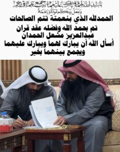 الحمدلله الذي تتم بنعمته الصالحاتتم بحمد الله عقد قران :( عبدالعزيز نايف أبوطفرة )راجياً من…