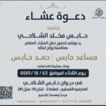 تذكير الليلةالثلاثاء 2024/10/08 افراح الشبعان يتشرف :خالد شبيب خالد الشبعان المطيري في ديواننا الكائن بـ…